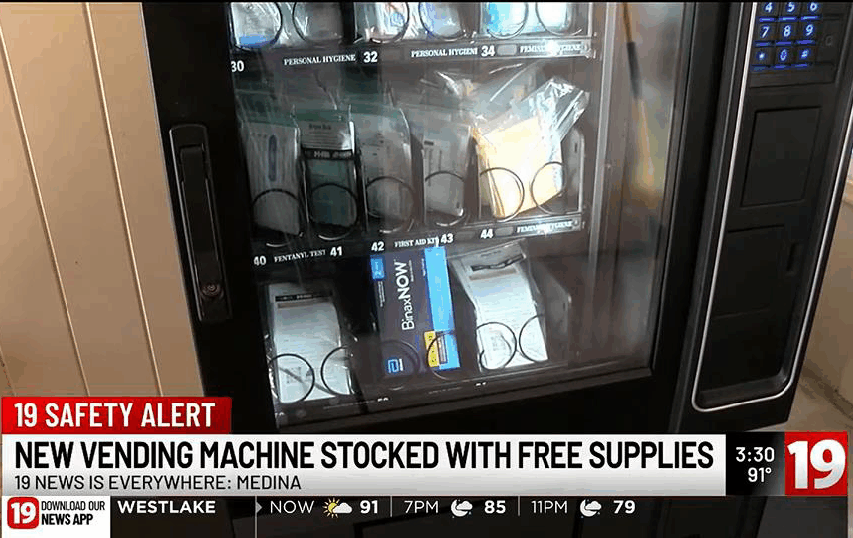 ‘A free vending machine at Hope Recovery Community is open 24 hours a day is filled with life-saving overdose prevention drugs and hygiene products, a first in Medina County.’